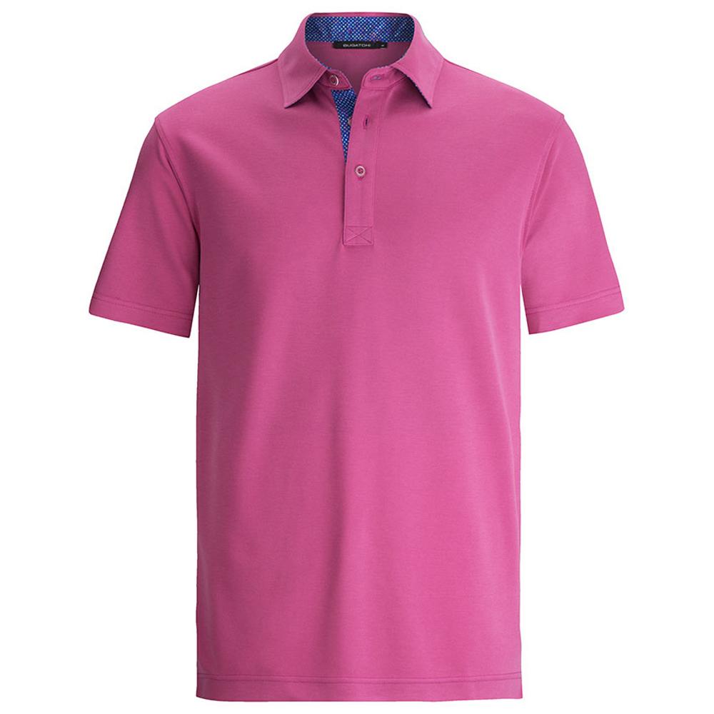 Create a custom embroidery Bugatchi Men's Fuchsia Short Sleeve Three Button Polo Collar that is ideal as a gift or employee apparel. Simple enough to carry your custom logo with pride, yet luxurious enough to be used as corporate apparel. Allowing for a wide range of movement on the golf course or diverse enough to carry your custom logo and be used as high end gifts. The three button collar offers the classic look of a polo that will seamlessly fit into your wardrobe no matter your form of employment. Place an order for a few or a large amount to use for your purposes.Highlights
