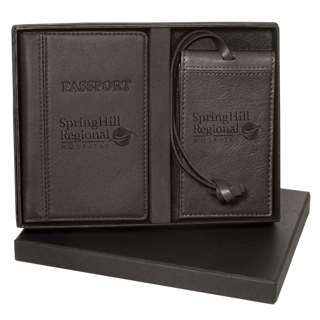 Leeman Black Voyager Lloyd Harbor Passport and Magnetic Luggage Tag Set can help your company logo "travel far"! It combines a Magnetic Luggage Tag and Passport Jacket with each piece made from Leather and finished with faux suede lining. Add your custom imprint and give them out at the next trade show, convention or conference you attend.The minimum order for this product is 25 pieces.