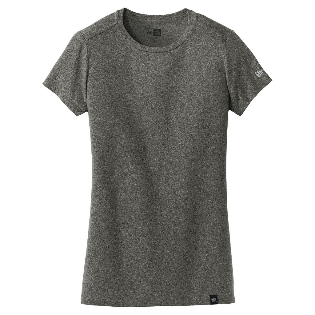 With a logoed New Era Women's Black Twist Heritage Blend Crew Tee, you create a powerful marketing platform for your company. Simply attach your corporate logo on the large imprint area to enjoy more exposure for your brand in the community. The 60% cotton fabric feels smooth on the skin to offer comfort throughout the day. Forty percent polyester withstands the punishment received during high-energy recreational activities. Enjoy an itch free shirt that uses a heat transfer label instead of a sewn on tag. Reverse neck and shoulder taping produce a refined appearance worthy of your esteemed professional status.Corresponding Men's Style: New Era Men's Black Twist Heritage Blend Crew Tee