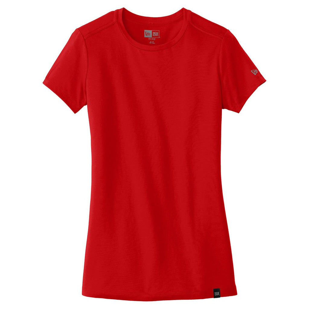 With a logoed New Era Women's Scarlet Heritage Blend Crew Tee, you create a powerful marketing platform for your company. Simply attach your corporate logo on the large imprint area to enjoy more exposure for your brand in the community. The 60% cotton fabric feels smooth on the skin to offer comfort throughout the day. Forty percent polyester withstands the punishment received during high-energy recreational activities. Enjoy an itch free shirt that uses a heat transfer label instead of a sewn on tag. Reverse neck and shoulder taping produce a refined appearance worthy of your esteemed professional status.Corresponding Men's Style: New Era Men's Scarlet Heritage Blend Crew Tee