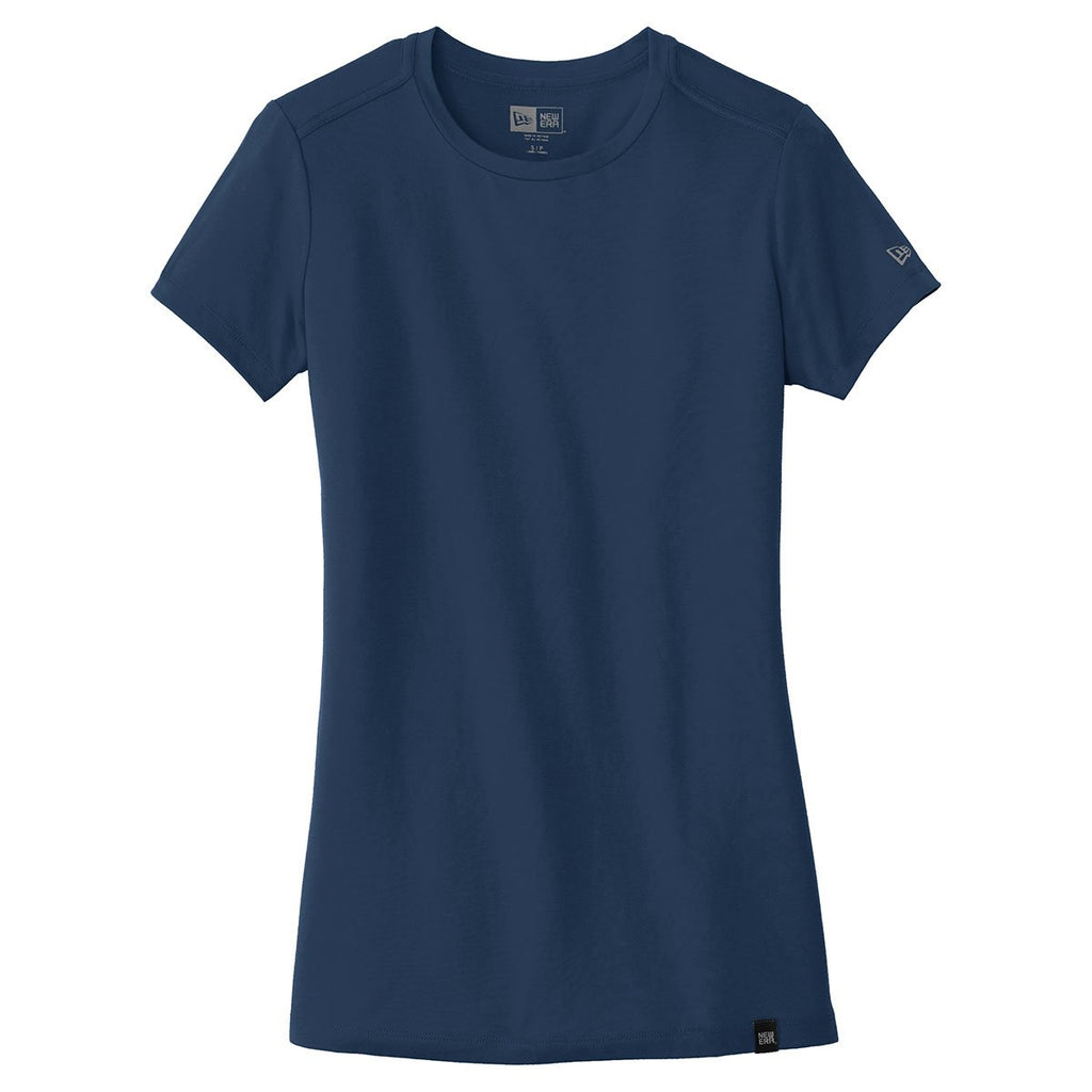 With a logoed New Era Women's Dark Royal Heritage Blend Crew Tee, you create a powerful marketing platform for your company. Simply attach your corporate logo on the large imprint area to enjoy more exposure for your brand in the community. The 60% cotton fabric feels smooth on the skin to offer comfort throughout the day. Forty percent polyester withstands the punishment received during high-energy recreational activities. Enjoy an itch free shirt that uses a heat transfer label instead of a sewn on tag. Reverse neck and shoulder taping produce a refined appearance worthy of your esteemed professional status.Corresponding Men's Style: New Era Men's Dark Royal Heritage Blend Crew Tee