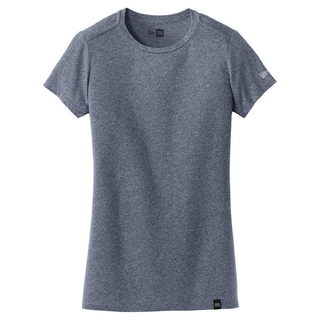 With a logoed New Era Women's True Navy Twist Heritage Blend Crew Tee, you create a powerful marketing platform for your company. Simply attach your corporate logo on the large imprint area to enjoy more exposure for your brand in the community. The 60% cotton fabric feels smooth on the skin to offer comfort throughout the day. Forty percent polyester withstands the punishment received during high-energy recreational activities. Enjoy an itch free shirt that uses a heat transfer label instead of a sewn on tag. Reverse neck and shoulder taping produce a refined appearance worthy of your esteemed professional status.Corresponding Men's Style: New Era Men's True Navy Twist Heritage Blend Crew Tee