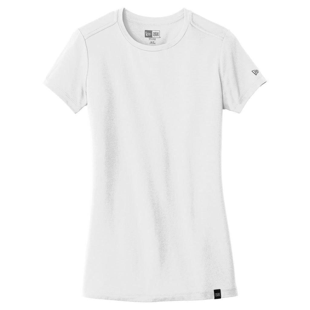 With a logoed New Era Women's White Heritage Blend Crew Tee, you create a powerful marketing platform for your company. Simply attach your corporate logo on the large imprint area to enjoy more exposure for your brand in the community. The 60% cotton fabric feels smooth on the skin to offer comfort throughout the day. Forty percent polyester withstands the punishment received during high-energy recreational activities. Enjoy an itch free shirt that uses a heat transfer label instead of a sewn on tag. Reverse neck and shoulder taping produce a refined appearance worthy of your esteemed professional status.Corresponding Men's Style: New Era Men's White Heritage Blend Crew Tee