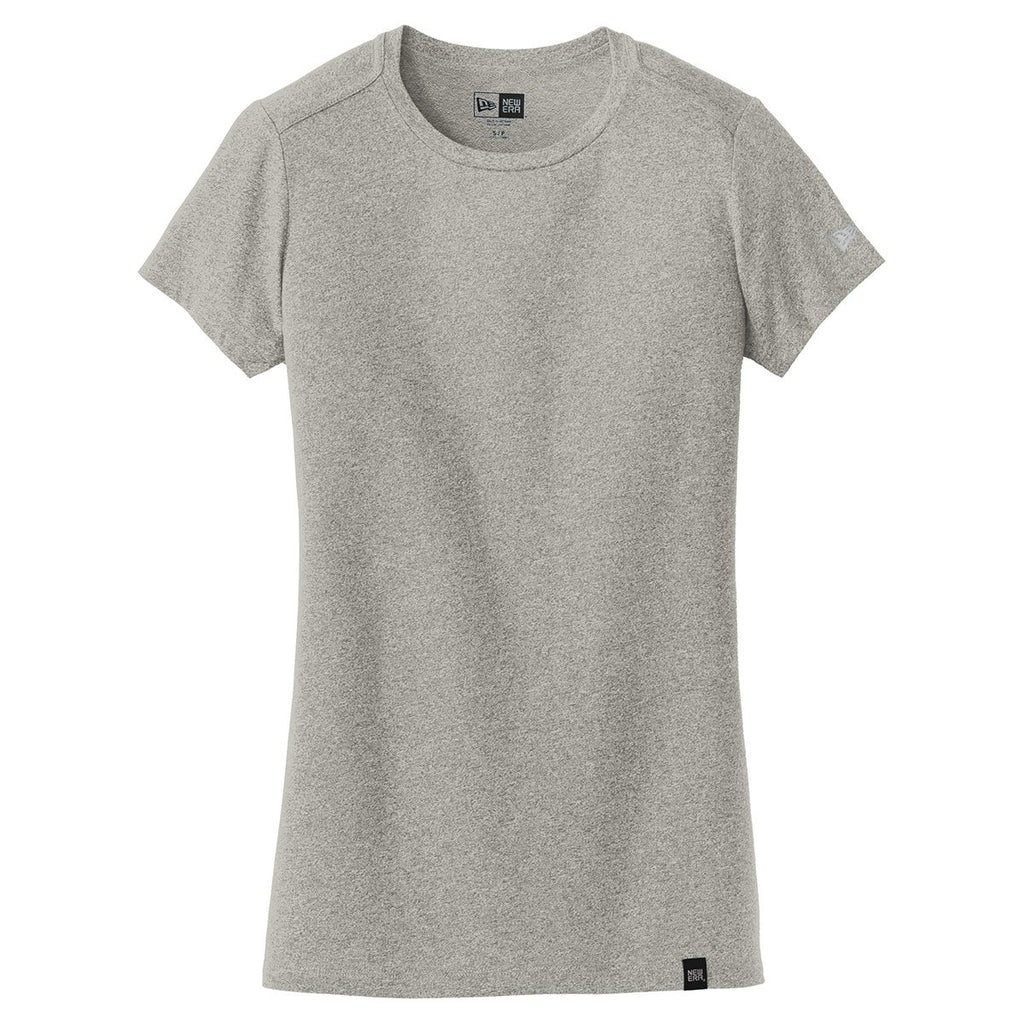 With a logoed New Era Women's Rainstorm Grey Heather Heritage Blend Crew Tee, you create a powerful marketing platform for your company. Simply attach your corporate logo on the large imprint area to enjoy more exposure for your brand in the community. The 60% cotton fabric feels smooth on the skin to offer comfort throughout the day. Forty percent polyester withstands the punishment received during high-energy recreational activities. Enjoy an itch free shirt that uses a heat transfer label instead of a sewn on tag. Reverse neck and shoulder taping produce a refined appearance worthy of your esteemed professional status.Corresponding Men's Style: New Era Men's Rainstorm Grey Heather Heritage Blend Crew Tee