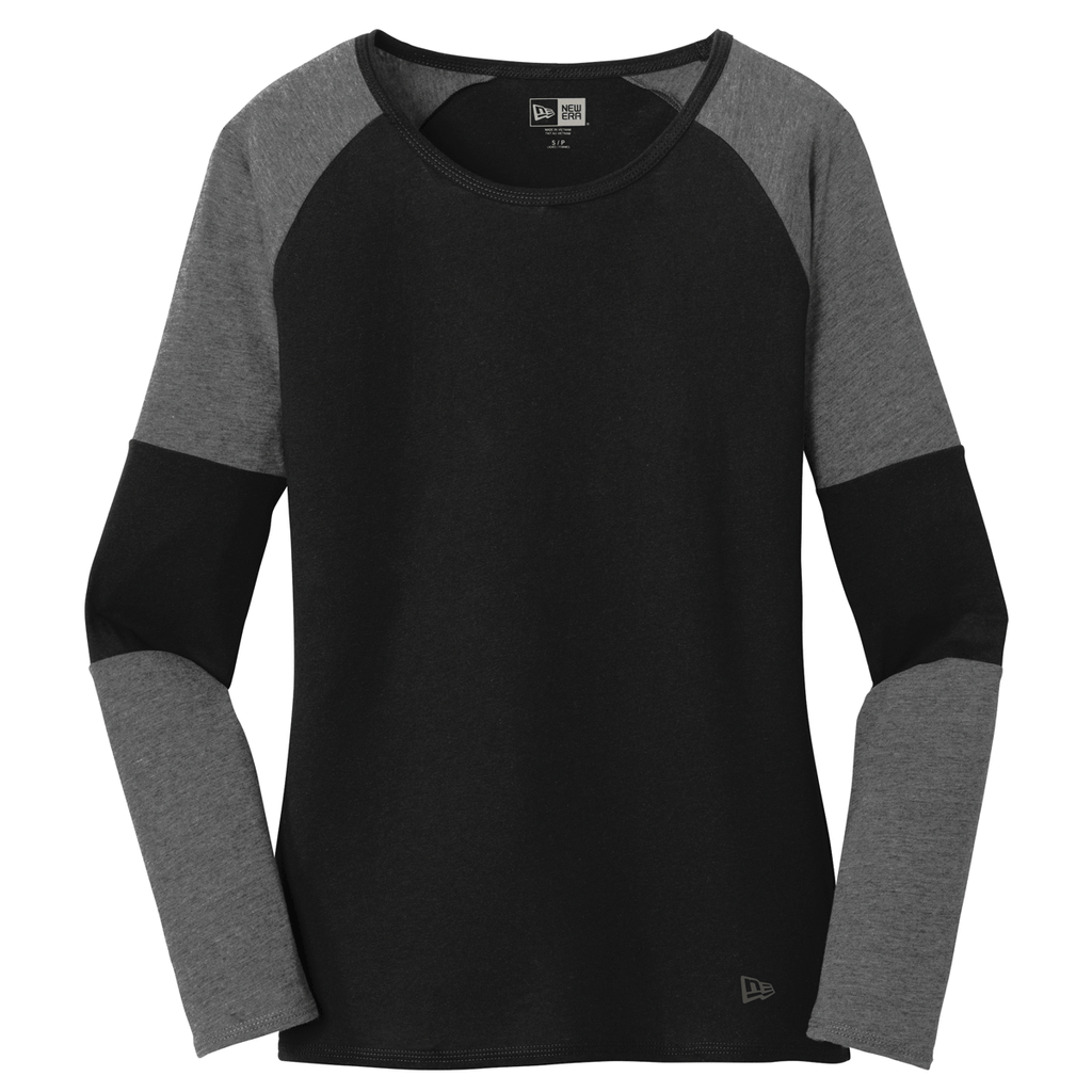 A great custom giveaway for any season of the year. The New Era Women's Dark Graphite/Black Solid Tri-Blend Performance Baseball Tee is both comfortable and stylish enough to please anyone that receives it. Designed to withstand the wear and tear of daily use, the versatile tee is a great piece for your next company giveaway. Moisture wicking technology ensures you remain feeling as fresh at the end of a busy day as you did when you left the house. Attach your company logo to create awareness for your brand both on the field and around the community. Thanks to the classic style from New Era, this tee will be a favorite for years to come.