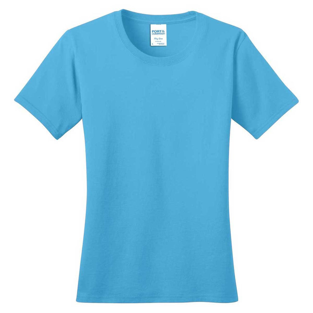 Port & Company Women's Aquatic Blue Ring Spun Cotton Tee