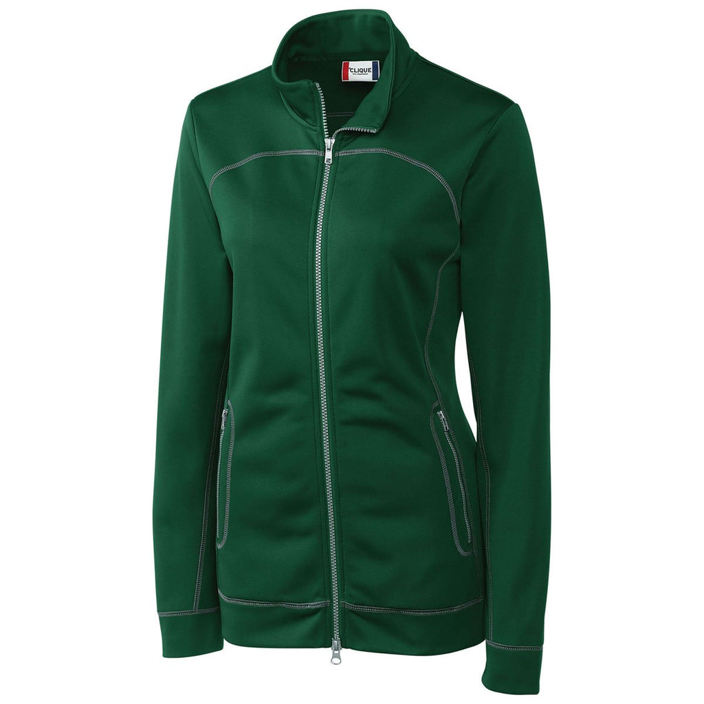Change how professional peers view company apparel by ordering the custom logoed Clique Women's Bottle Green Helsa Full Zip for the female members of your hard charging team. The versatile jacket features a full zipper that runs up to the attractive mock neck. Wear the full zip on the golf course during a corporate sponsored golf tournament and bring it along on the next business trip to an industry convention. Attach your corporate logo on the full zip jacket to boost your company's image in the community. Unique piecing details and covered stitched frame zippered pockets seal the upscale design deal for the full zip jacket.Corresponding Men's Style:Clique Men's Bottle Green Helsa Full Zip