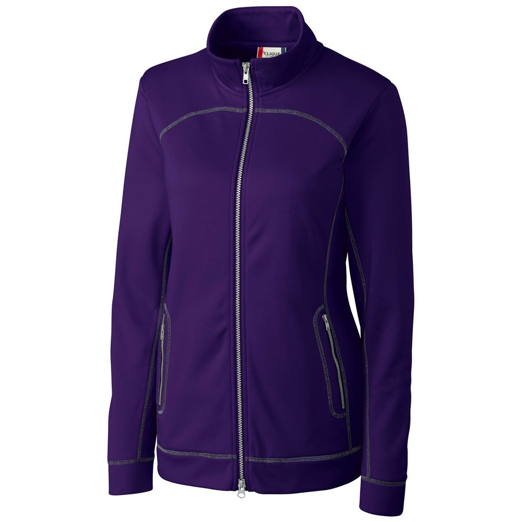 Change how professional peers view company apparel by ordering the custom logoed Clique Women's College Purple Helsa Full Zip for the female members of your hard charging team. The versatile jacket features a full zipper that runs up to the attractive mock neck. Wear the full zip on the golf course during a corporate sponsored golf tournament and bring it along on the next business trip to an industry convention. Attach your corporate logo on the full zip jacket to boost your company's image in the community. Unique piecing details and covered stitched frame zippered pockets seal the upscale design deal for the full zip jacket.Corresponding Men's Style:Clique Men's College Purple Helsa Full Zip