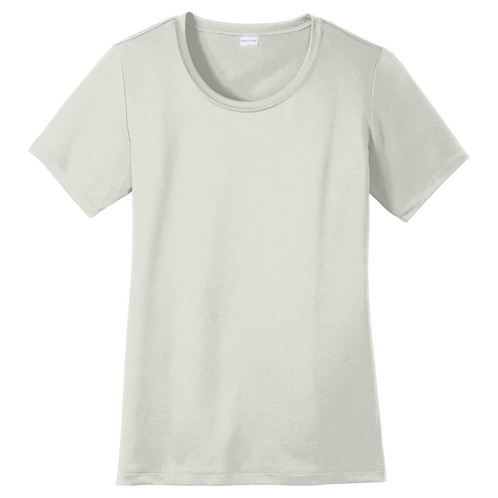 Do moisture laden t-shirts bog you down whenever you need to ramp up the competitive juices? Sport-Tek Women's Silver PosiCharge Tough Tee contain moisture wicking technology that quickly evaporates perspiration the instant it forms on your skin. The result is a cooling of the skin that invigorates your body. Set-in sleeves allow for more arm movement, which comes in handy on the golf course and tennis court. The super soft fabric endures countless wash and dry cycles, without any of the colors fading. One-hundred percent rugged polyester interlock resists rips and tears. Attach your company logo to the t-shirts to spread the word about your brand.Corresponding Men's Style: Sport-Tek Men's Silver PosiCharge Tough Tee
