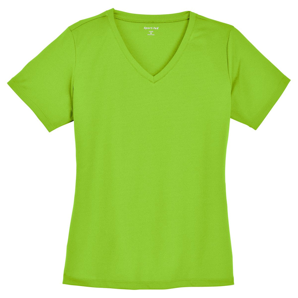 Sport-Tek Women's Neon Green PosiCharge RacerMesh V-Neck Tee