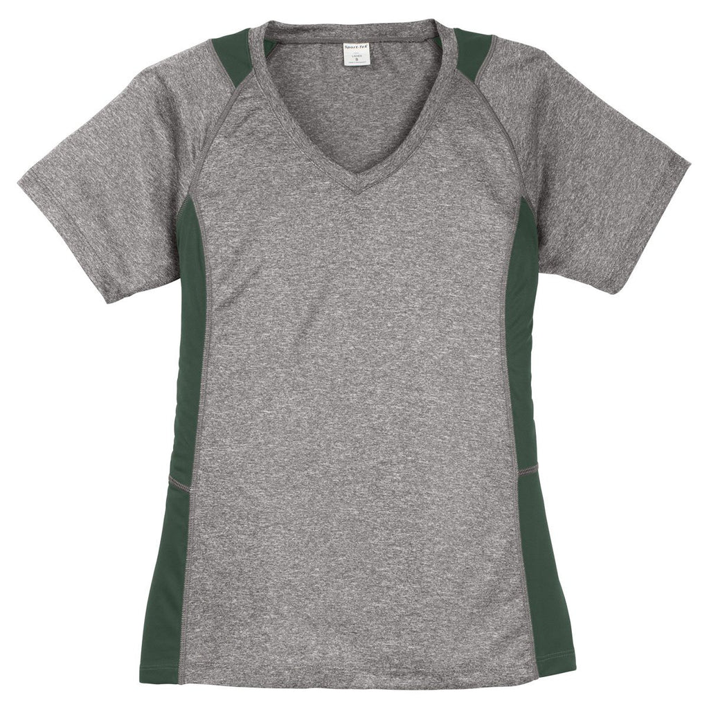 Sport-Tek Women's Vintage Heather/Forest Green Heather Colorblock Contender V-Neck Tee