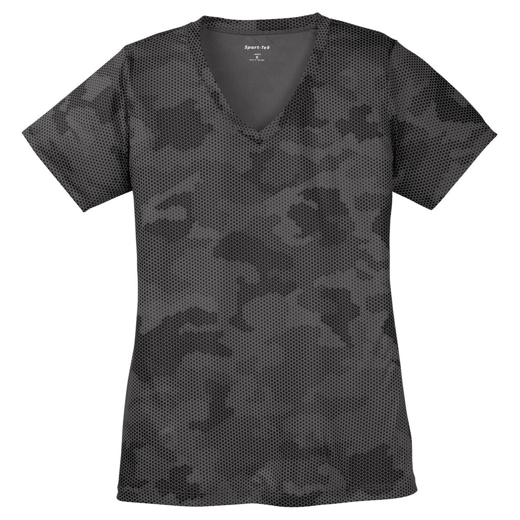 Sport-Tek Women's Iron Grey CamoHex V-Neck Tee