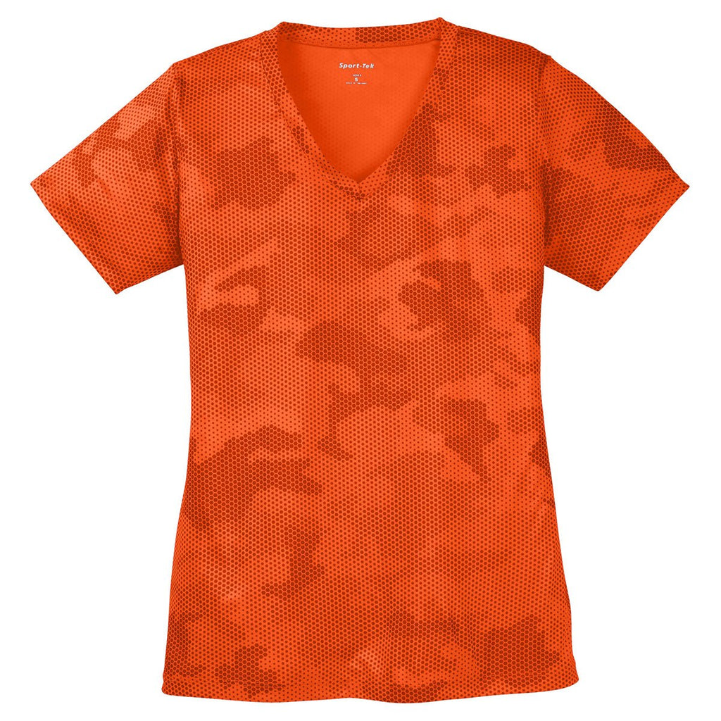 Sport-Tek Women's Neon Orange CamoHex V-Neck Tee