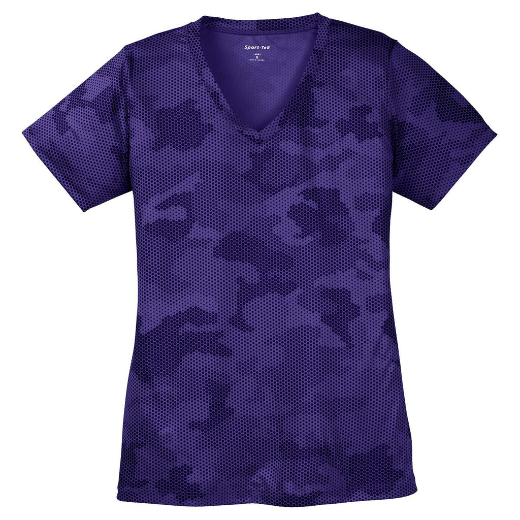 Sport-Tek Women's Purple CamoHex V-Neck Tee