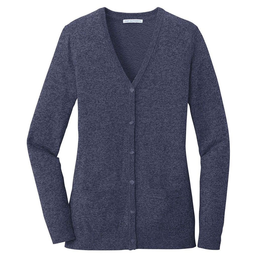 Port Authority Women's Navy Marl Marled Cardigan Sweater