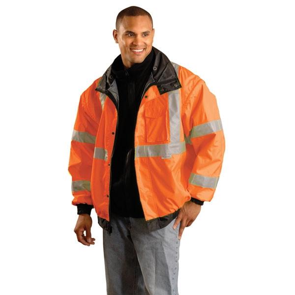 Parka, bomber, and breathable jackets from OccuNomix include a large area for attaching your corporate logo. Add a custom logo of your company and watch awareness of your services soar. Easy on and off zip-out quilted lining works great for emergency personnel that cannot afford to spare seconds in response to a crisis. Three layers of weather blocking material keep you comfortable during the harshest of Mother Nature's displays. OccuNomix Men's Orange Premium Four-Way Original Bomber designed by OccuNomix include waterproof materials and sealed seams that keep you dry all day long. Some models of the jackets come with a roll-away hood and reversible quilted vest.Highlights