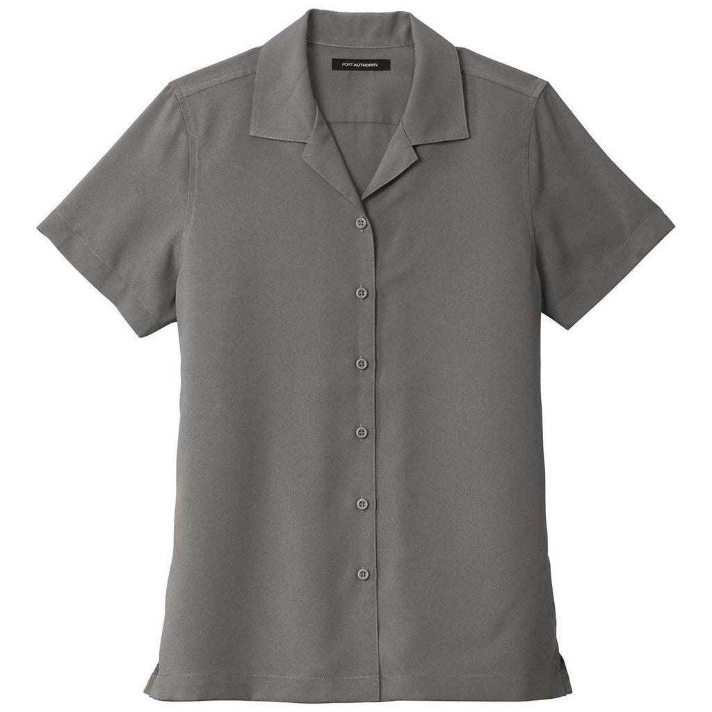 Port Authority Women's Graphite Short Sleeve Performance Staff Shirt provides the perfect canvas for an embroidery design of your choosing. The 100% polyester, lightweight short sleeve shirt is fashion forward and functional for the office or a day out with friends. Complete with stain release, odor-fighting, and moisture wicking technologies, this shirt is a must have at corporate events and daily office wear. Add a corporate logo to advertise your brand or a custom logo to use for daily wear. The camp collar styling is perfect for layering and side vents offer freedom of movement. Place your order right away to add these to your personal wardrobe or give as gifts.Corresponding Men's Style: Port Authority Men's Graphite Short Sleeve Performance Staff Shirt