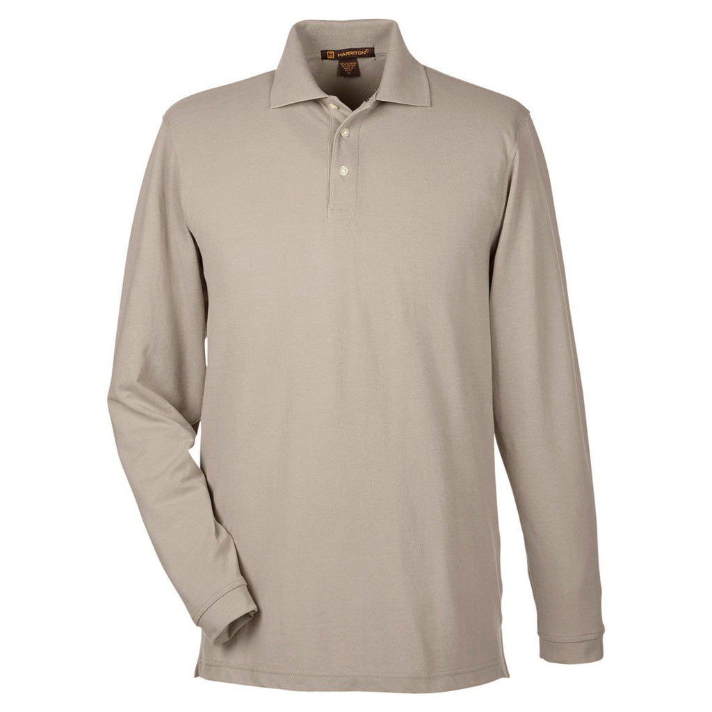 Harriton Men's Stone 5.6 oz. Easy Blend Long-Sleeve Polo