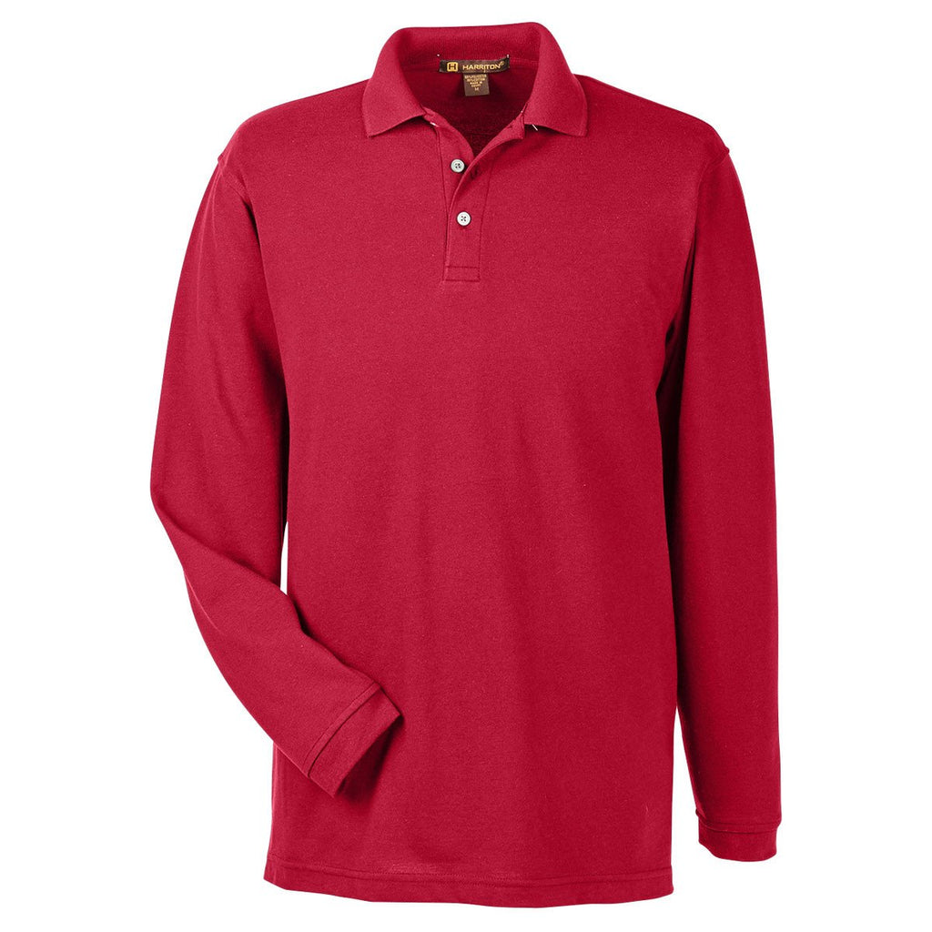 Harriton Men's Red 5.6 oz. Easy Blend Long-Sleeve Polo