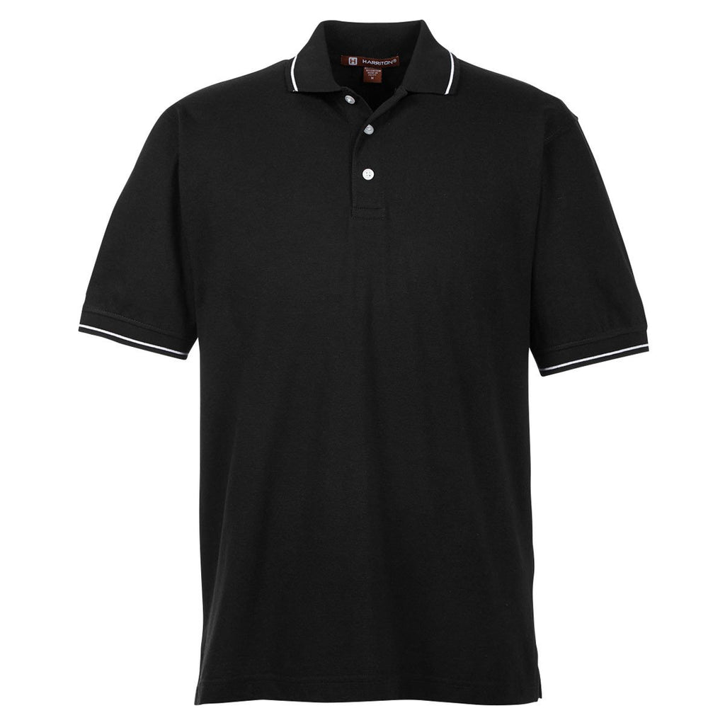 Harriton Men's Black/White 5.6 oz. Tipped Easy Blend Polo