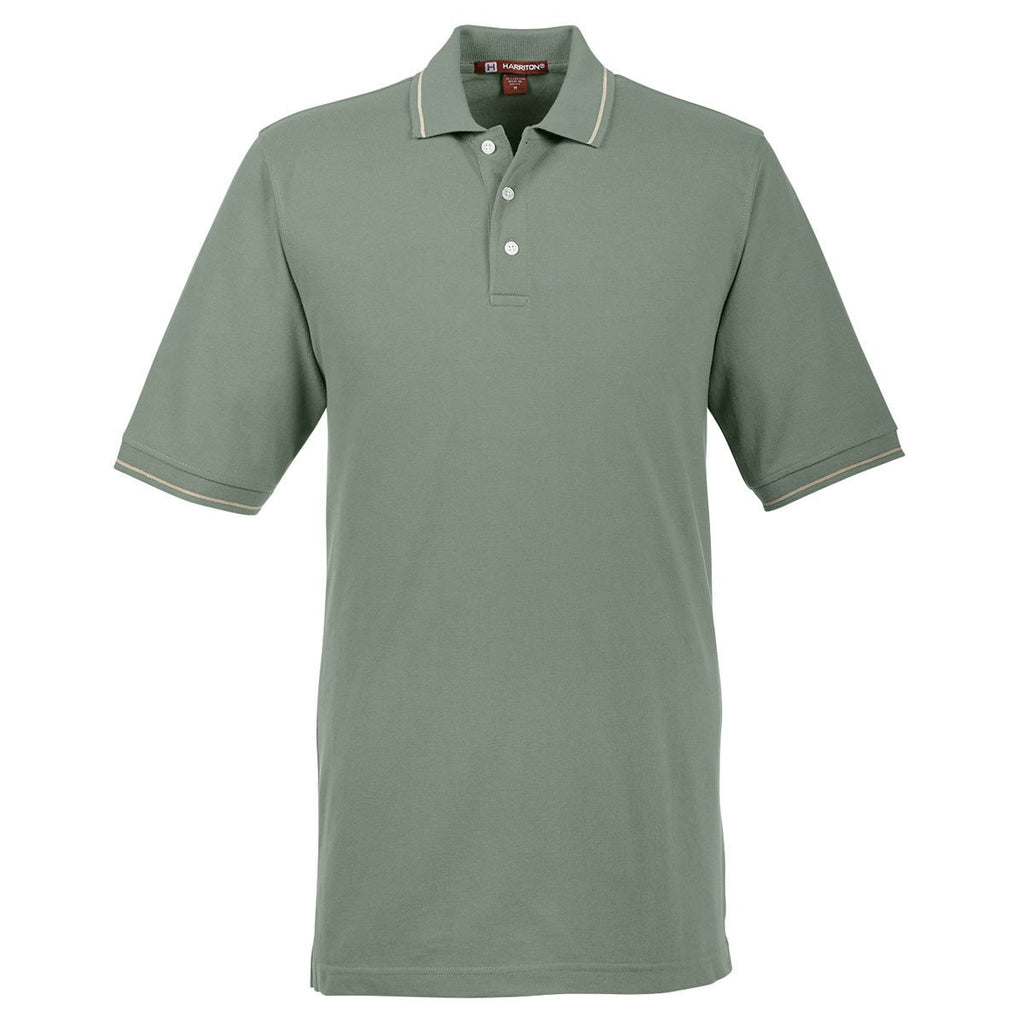 Harriton Men's Dill/Stone 5.6 oz. Tipped Easy Blend Polo