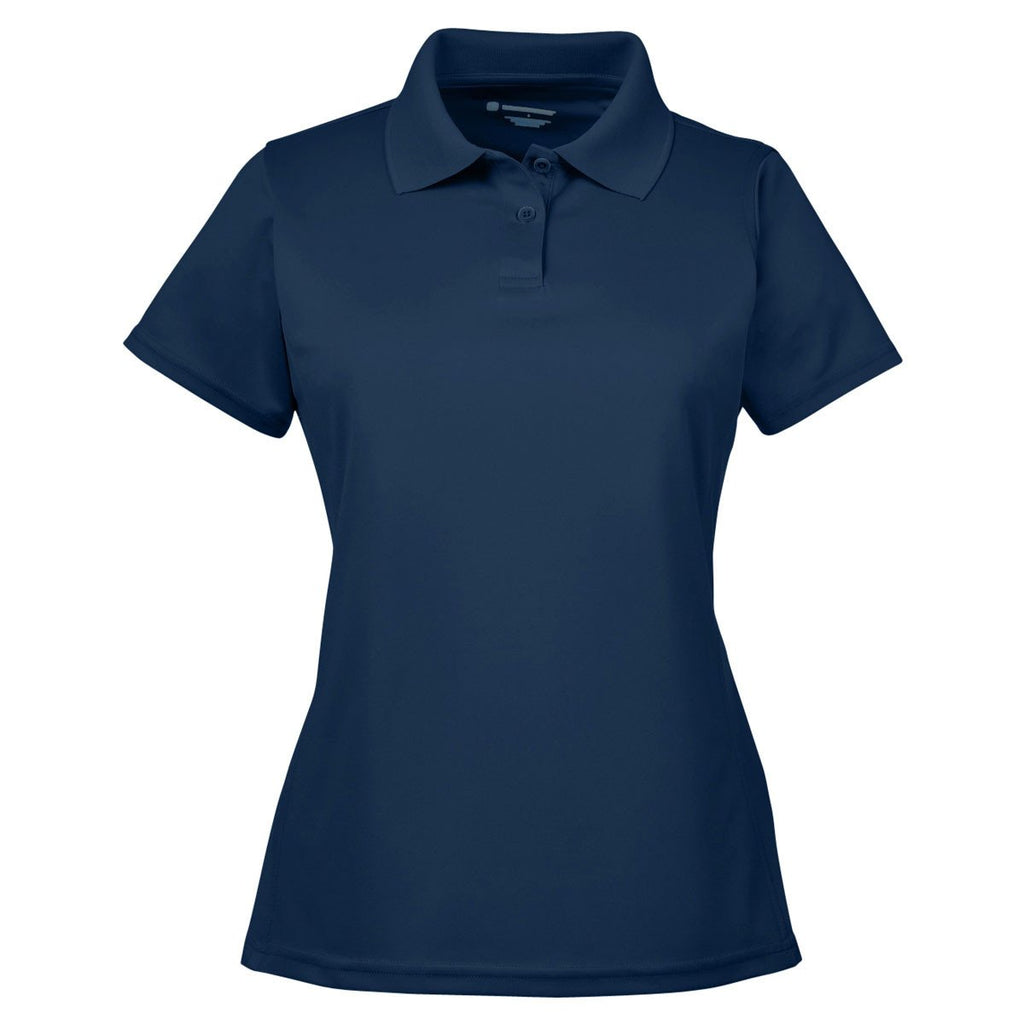 Double-needle topstitch on the side vents and bottom hem creates a compelling design for the Harriton Women's Navy 4 oz. Polytech Polo; The clean-finished inside neck and self-fabric neck tape complement the stylish two-button placket. One-hundred percent polyester absorbs and wicks moisture quicker than cotton. Antimicrobial properties keep you looking fresh during an all day corporate event. Anti-static measures eliminate the sudden shock of static to the skin. Add a custom logo to create more recognition for your company. Logoed corporate apparel provides you with a powerful platform to market your products and services.Corresponding Men's Style: Harriton Men's Navy 4 oz. Polytech Polo