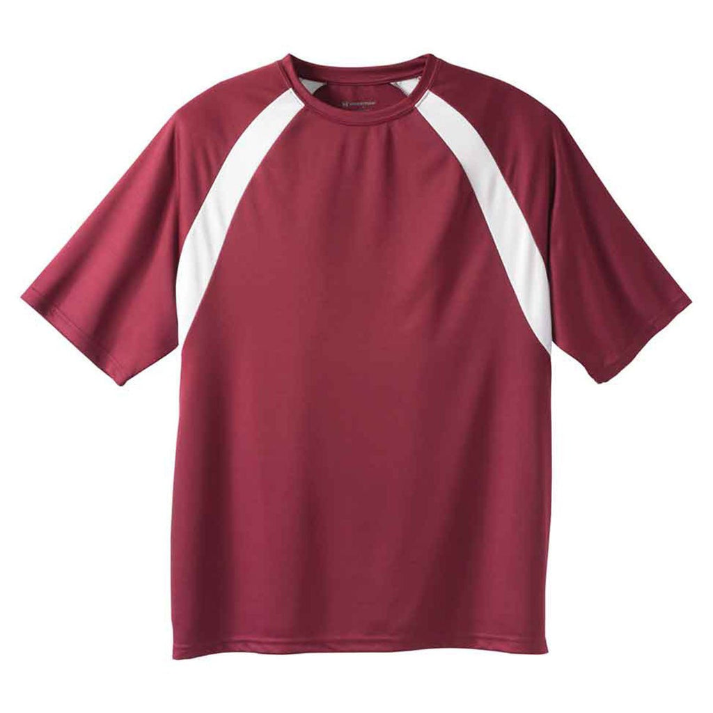 Harriton Men's Maroon/White 4.2 oz. Athletic Sport Colorblock T-Shirt