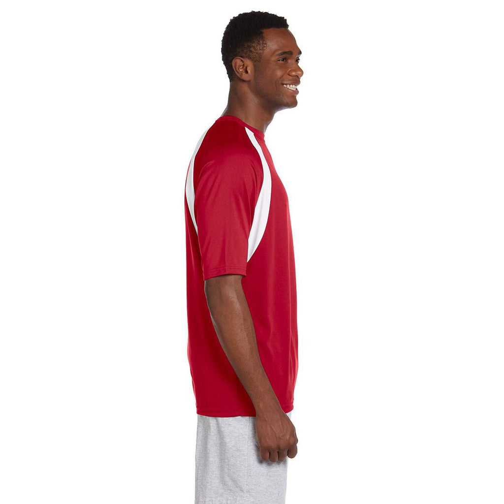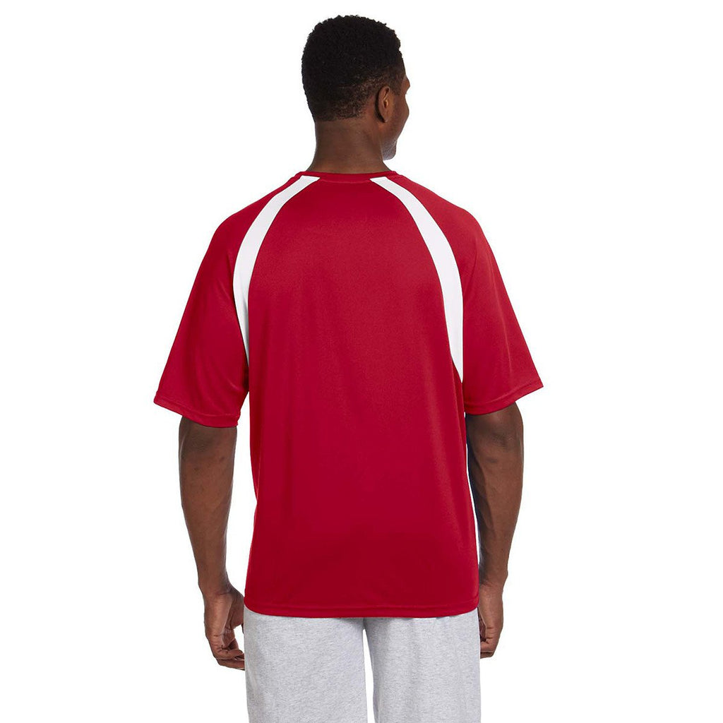 Harriton Men's Red/White 4.2 oz. Athletic Sport Colorblock T-Shirt