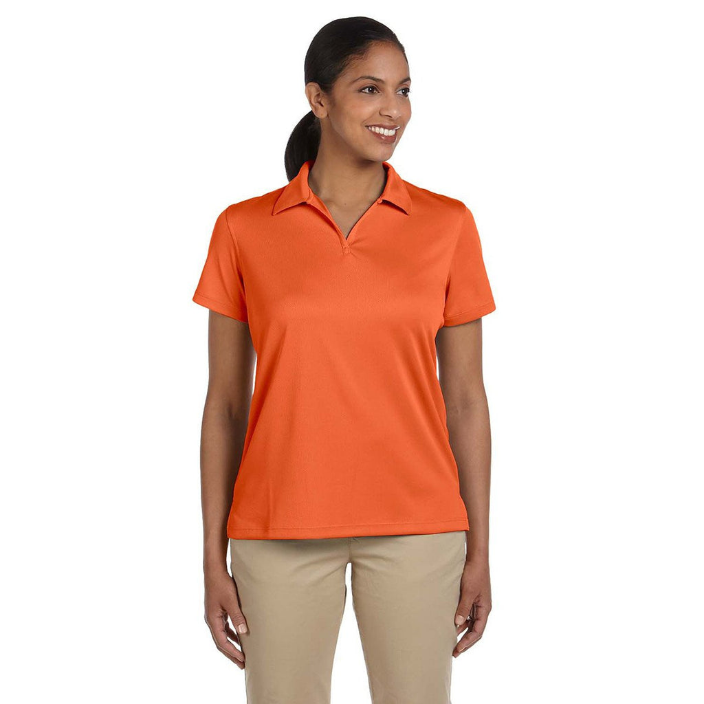 If you love outdoor sports during the warmer months of the year, you will love wearing the Harriton Women's Team Orange Double Mesh Polo. One-hundred percent polyester double mesh feels light on the body to give you more mobility on the golf course and softball field. Moisture wicking technology quickly removes sweat to cool the skin on the most humid days of the year. The self-collar and back neck yoke add panache to the rugged polo. Designed with a feminine V-slit collar, the double mesh polo offers a comfortable polo for wearing in the workplace. Attach a custom logo that defines the message you want your company to convey.Corresponding Men's Style: Harriton Men's Team Orange Double Mesh Polo