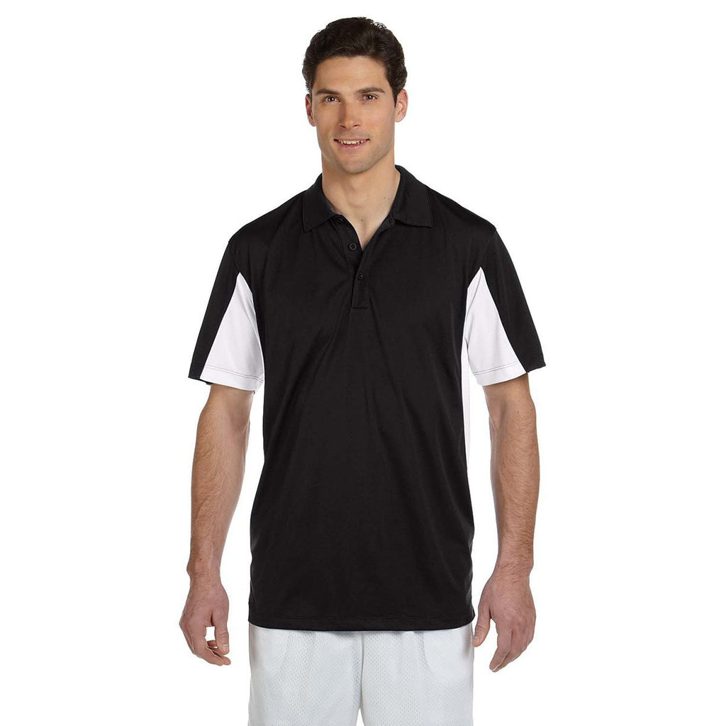 Harriton Men's Black/White Side Blocked Micro-Pique Polo