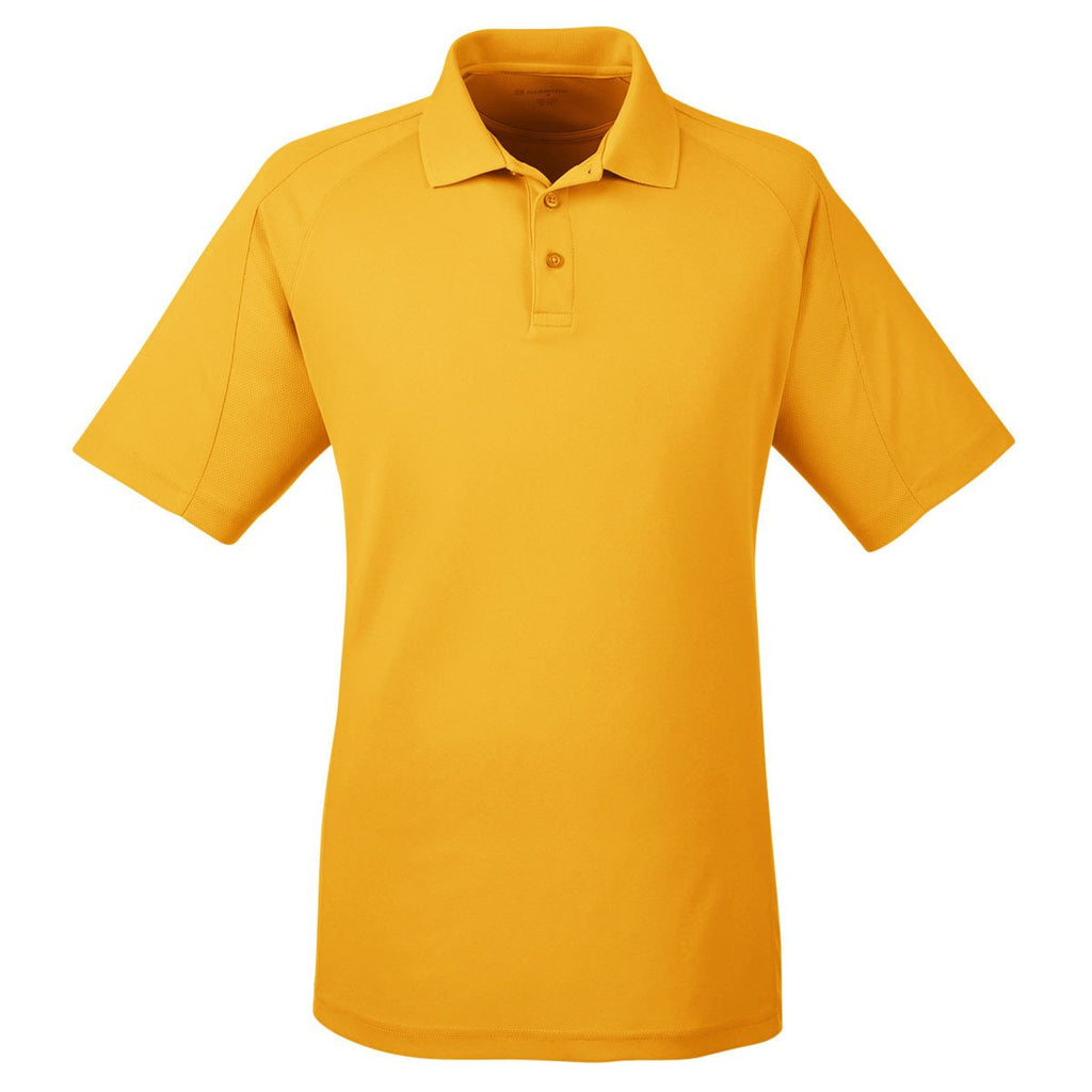 Harriton Men's Gold 3.8 oz. Polytech Mesh Insert Polo