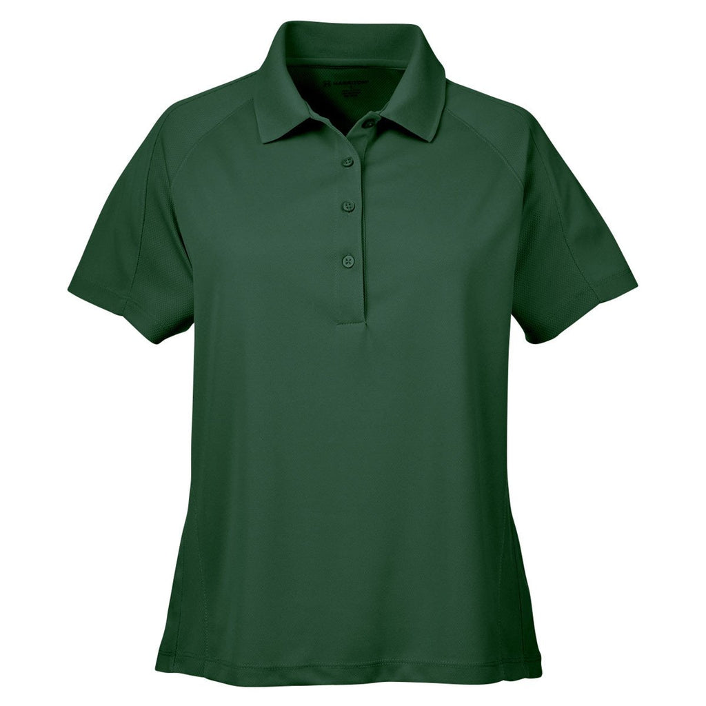 Harriton Women's Dark Green 3.8 oz. Polytech Mesh Insert Polo