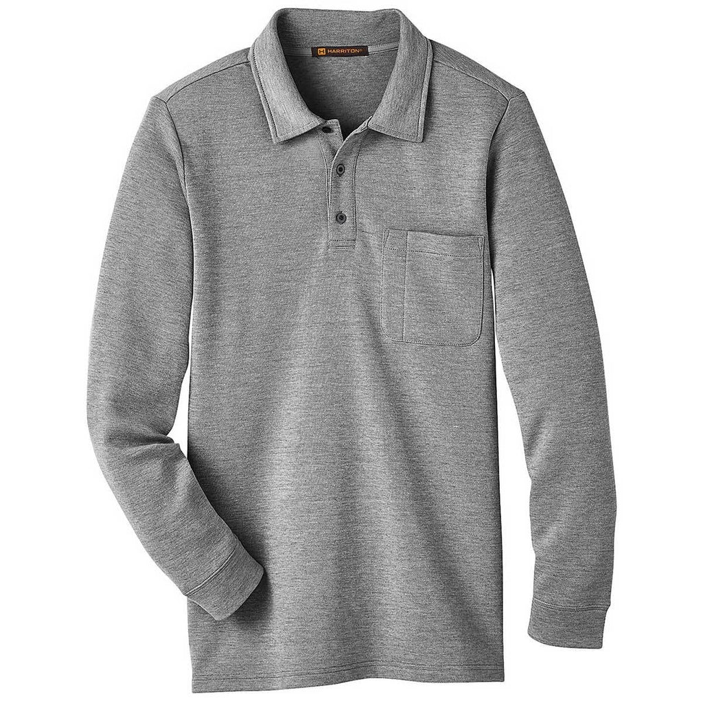 Harriton Men's Dark Charcoal Heather StainBloc Pique Fleece Pullover Jacket
