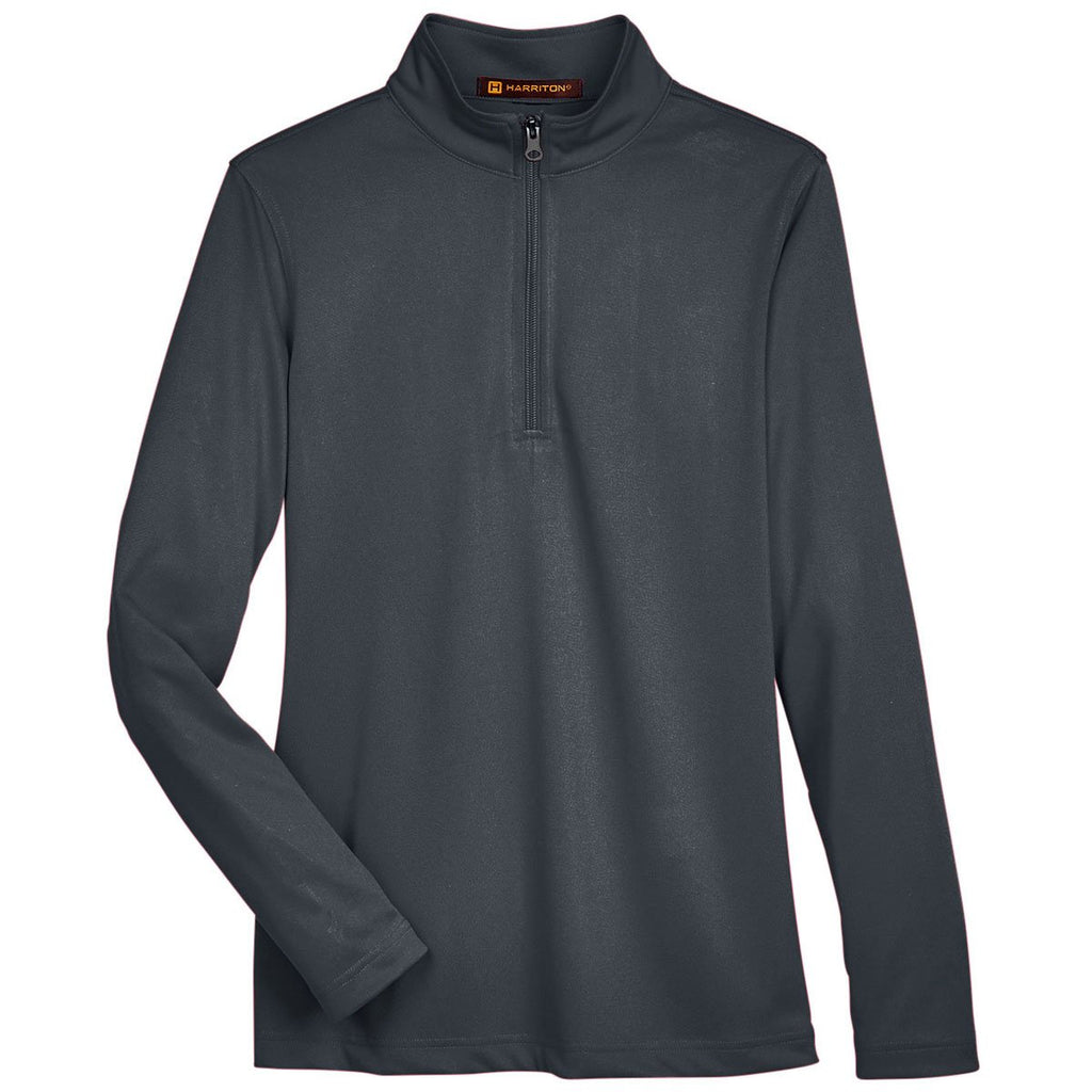 Ready to be part of women's custom logoed dress code in your company, the Harriton Women's Dark Charcoal Advantage Snag Protection Plus Quarter-Zip offers the best of form and function. It's a professional, comfortable and versatile promo item that's sure to garner impressions for your brand once embroidered with your company logo. Its moisture-wicking power wicks the sweat away from the skin to make for quick-dry and odor-free comfort all day. Designed with UV Protection for protection from the sun's rays making it perfect for anyone with a physical outdoor job. Constructed with an antimicrobial agent that keep bacteria at bay. Side vents ensure optimal breathability. Tested results prove it lasts up to 75 washes. Ideal for athletic and casual use and can be worn throughout the day and beyond.Corresponding Men's Style:Harriton Men's Dark Charcoal Advantage Snag Protection Plus Quarter-Zip