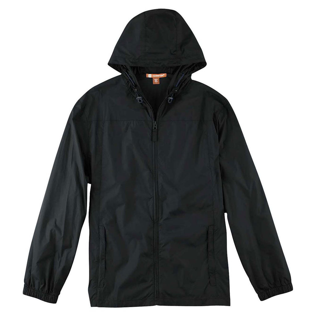 Harriton Men's Black Essential Rainwear offers you an effective way to promote your company in the community. All you have to do adding a custom logo and hand out the water resistant rainwear to loyal customers of your business. Your loyal customers will love the 100% nylon plain weave design of the Essential Rainwear. The pack away pouch provides convenient storage for a rain jacket that you need to suddenly access. Elastic hem cuffs give you more arm mobility to work outdoors during rainy days. The draw string hood offers a snug fit, without pulling too tight around your head.Corresponding Women's Style: Harriton Women's Black Essential Rainwear