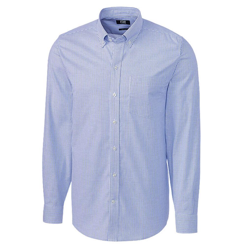 Cutter & Buck Men's French Blue Long Sleeve Epic Easy Care Tailored Fit Stretch Oxford Stripe Shirt