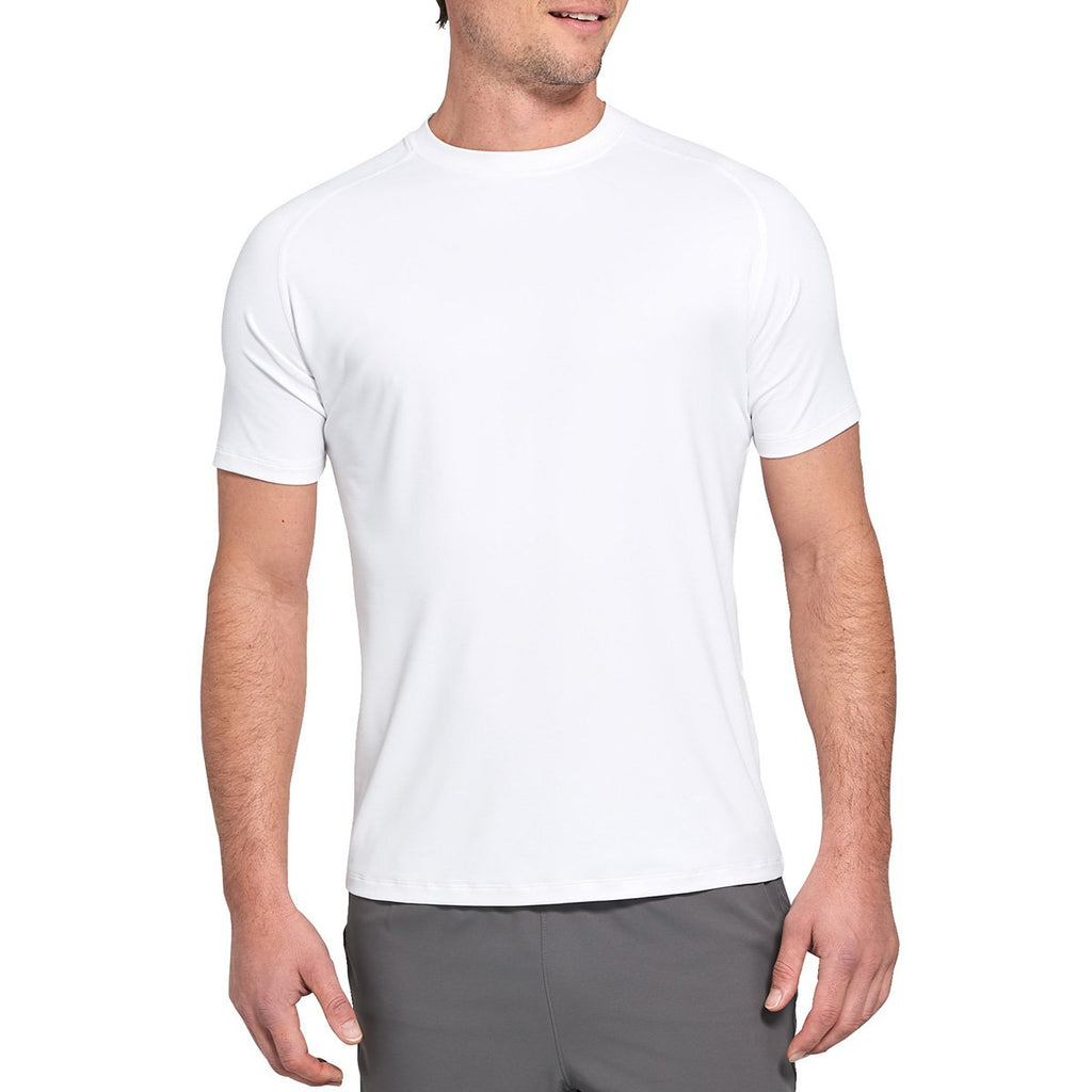 Work and play can work up a sweat, use the Peter Millar Men's White Rio Technical T-Shirt as a base layer or to wear alone in classic black or white options. Add a custom logo or corporate brand and use these t-shirts as employee apparel or even employee gifts when the holidays roll around. Perfect for working around the house or enjoying a round of golf, the athletic fit of this shirt offers a reflective Peter Millar long and UPF 50+ sun protection for those long days outdoors. Made of a polyester and spandex knit combination this shirt will help you look and feel your best while working out or relaxing after a hard week at the office. Choose your logo and place an order today.