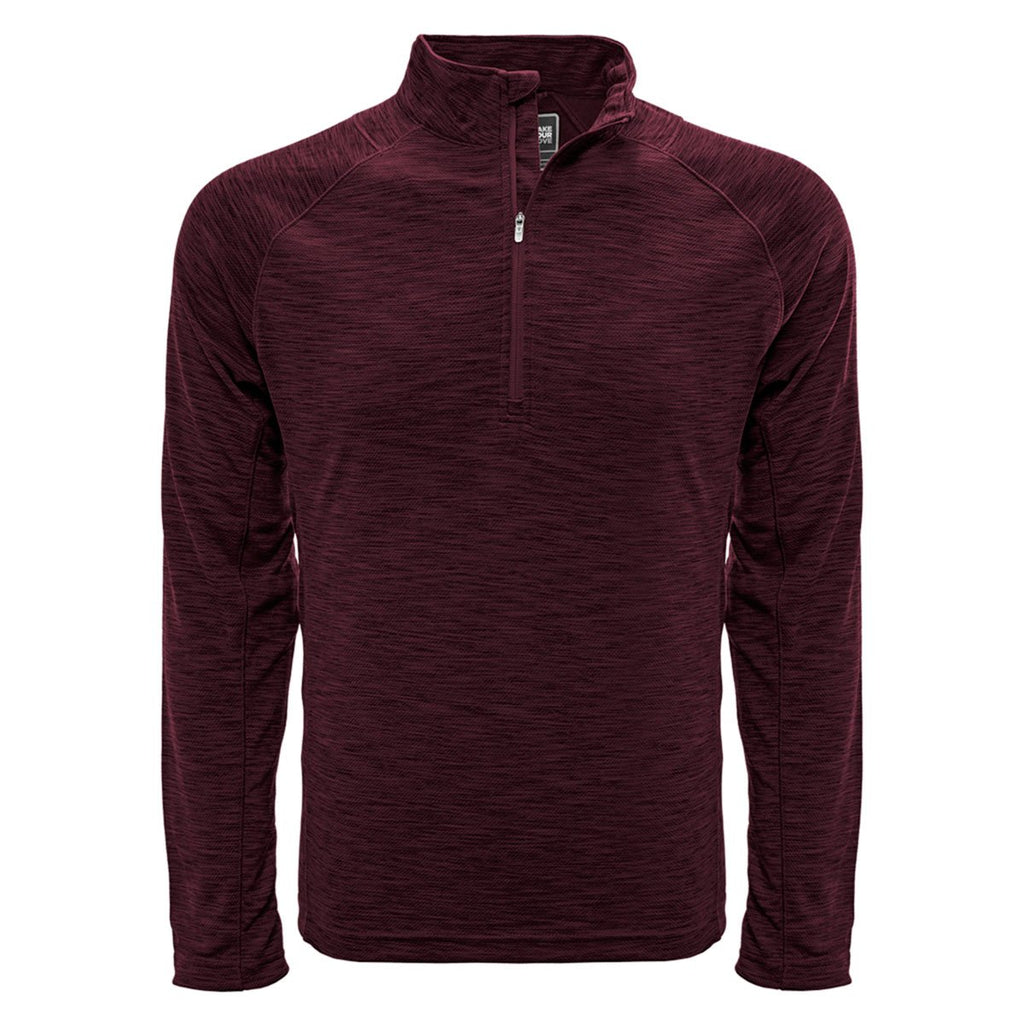 With a tonal space-dyed effect, the company logoed Levelwear Men's Maroon Mobility Quarter Zip will change the way you view corporate apparel. Raglan sleeves create a stylish appearance that attracts the attention of your professional peers at industry trade shows. Take advantage of the attention by attaching your corporate logo on the large imprint area. Mechanical stretch polyester gives you more mobility to reach difficult to access spaces in your backyard. Moisture wicking technology quickly removes perspiration to cool the skin. The quarter-zip front closure makes putting on and taking off the lightweight jacket a breeze.Highlights