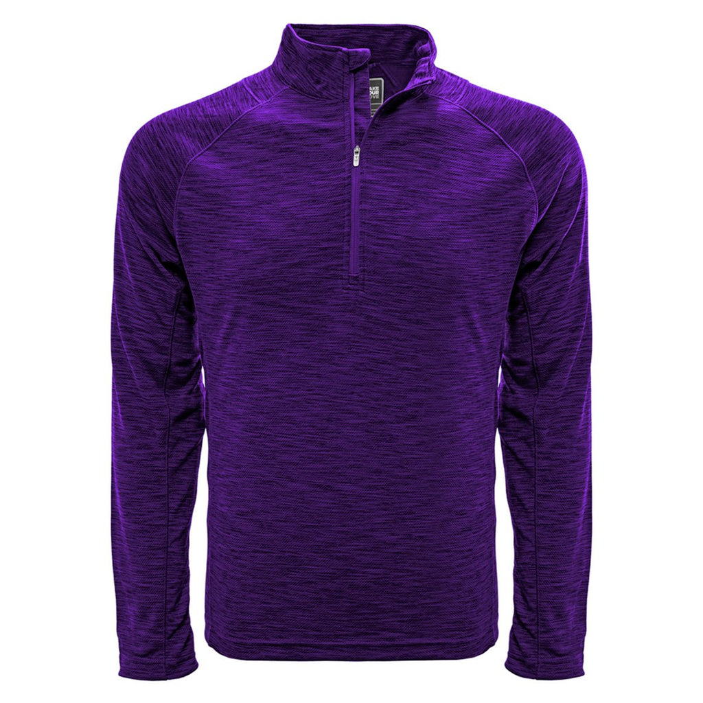 With a tonal space-dyed effect, the company logoed Levelwear Men's Purple Mobility Quarter Zip will change the way you view corporate apparel. Raglan sleeves create a stylish appearance that attracts the attention of your professional peers at industry trade shows. Take advantage of the attention by attaching your corporate logo on the large imprint area. Mechanical stretch polyester gives you more mobility to reach difficult to access spaces in your backyard. Moisture wicking technology quickly removes perspiration to cool the skin. The quarter-zip front closure makes putting on and taking off the lightweight jacket a breeze.Highlights