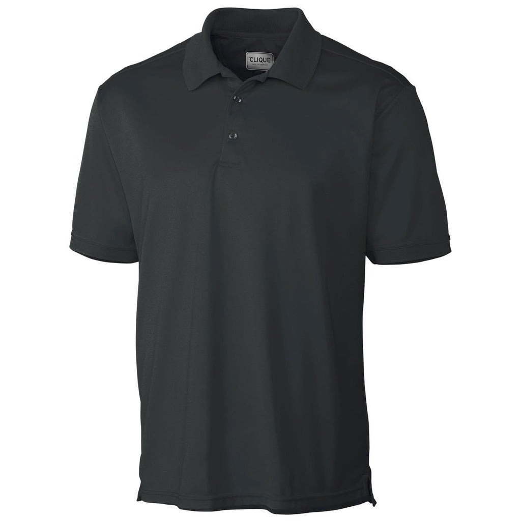 Side vents open the custom logoed Clique Men's Black Oslo Pique Polo up for more air circulation to remove moisture quickly. Dry, cool skin keeps you feeling energized during a highly competitive company sponsored golf tournament. The rugged 100% polyester pique fabric withstands the punishment delivered by active lifestyles. Weighing only 4.5 ounces, the lightweight polo never slows you down. The fashionable three-button placket exudes panache, while not diminishing the value of the short sleeve shirt as casual apparel for a wide variety of social occasions. Attach your corporate logo on the embroidery area to get the word out about your company.Corresponding Women's Style: Clique Women's Black Oslo Pique Polo
