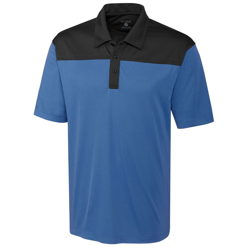 Two contrasting colors work brilliantly for the custom logoed Clique Men's Sea Blue/Titan Parma Colorblock Polo. As one of the most popular golf shirts in the Clique line of company apparel, the versatile polo is also appropriate for wearing at business seminars and conferences. Remember to add your company logo on the embroidery area to take advantage of the attention paid to the polo by your professional peers. Cover stitch detail enhances the aesthetic appeal of the polo, while ensuring the short sleeve shirt does not fray because of frequent use. The 100% polyester fabric resists rips and tears to look as fresh today as it looked the first time you put the polo on.Highlights