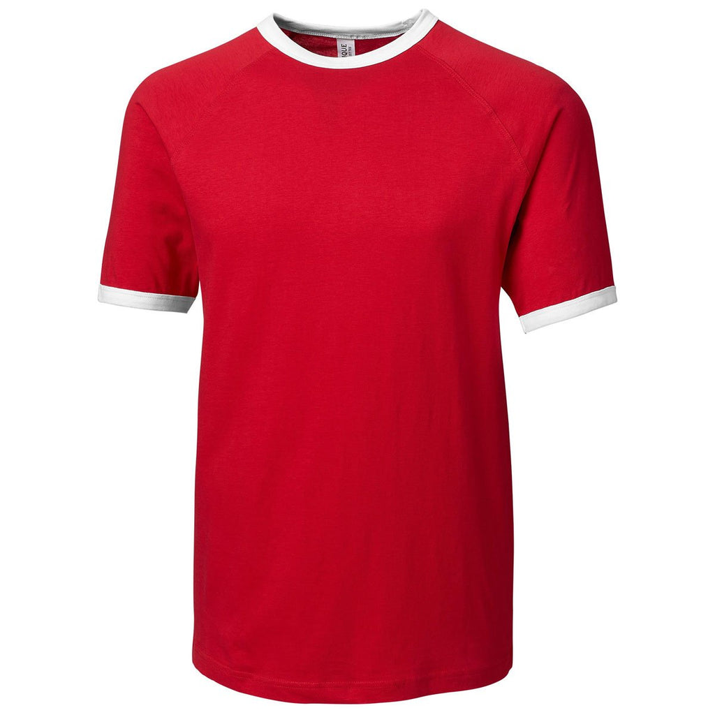 When you want to get the word out about your brand at corporate sponsored golf tournaments, hand out the Clique Men's Red Playlist Ringer Tee to each member of your team. Tear away the label and screen print your company logo to expand awareness for your products and services. Raglan sleeves deliver enhanced mobility and contrast ribbed cuffs and collar present a refined appearance worth of an accomplished professional. Tightly stitched side seams resist the types of rips and tears that diminish the quality of other styles of custom designed corporate apparel.Highlights