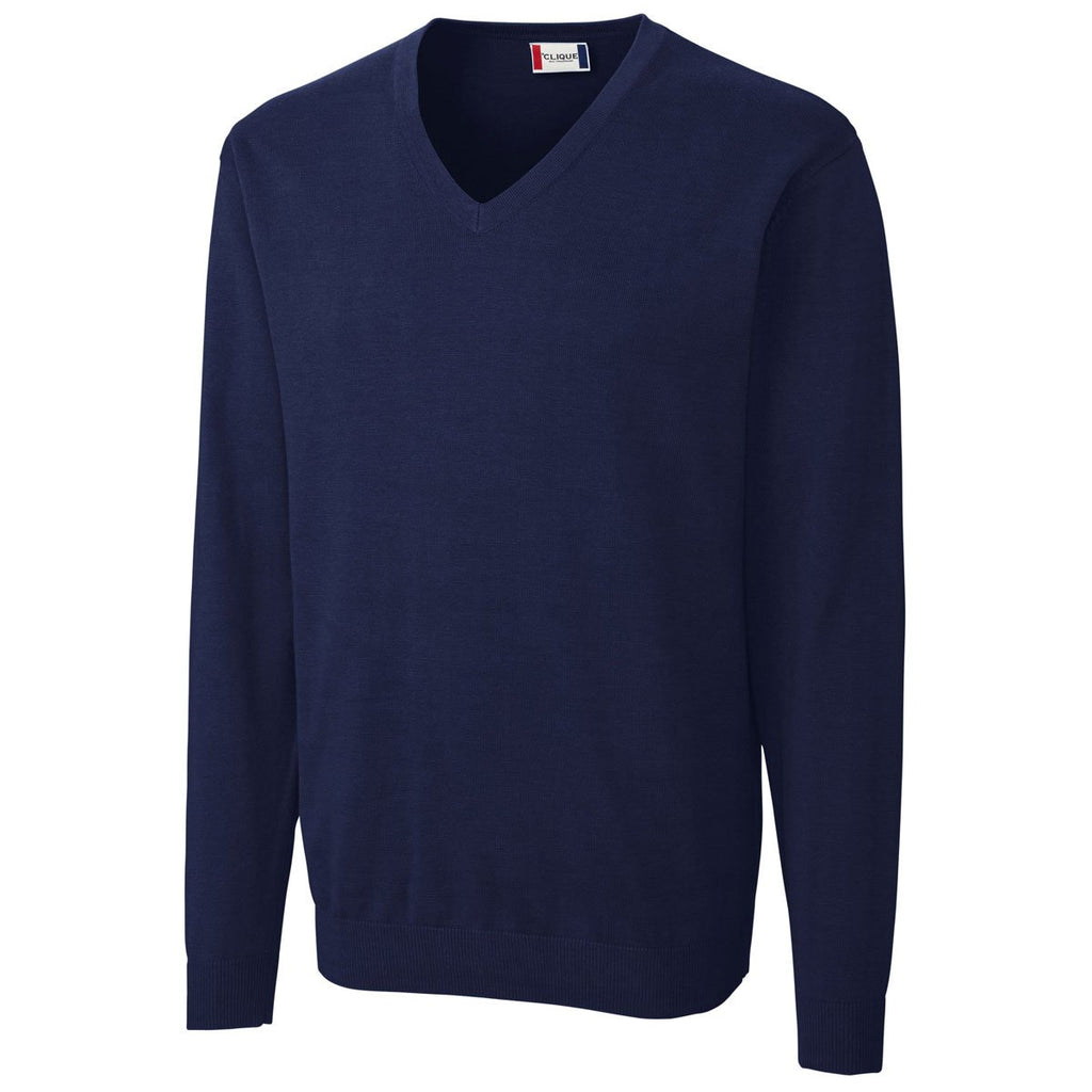 When you want to give company apparel that shines, look no further than the custom logoed Clique Men's Navy Imatra V-neck Sweater. The fashionable sweater presents an impressive silhouette that will get you noticed during business trips. Add your company logo on the large embroidery area to prompt everyone around you in a crowded airport terminal to take notice of your brand's commitment to excellence. Super smooth 100% cotton fabric contains a 12-gauge jersey stitch that resists rips and tears for years to come. Designed to present a masculine shape, the v-neck sweater works well over a Clique tee and under a cold weather jacket.Corresponding Women's Style:Clique Women's Navy Imatra V-neck Pullover