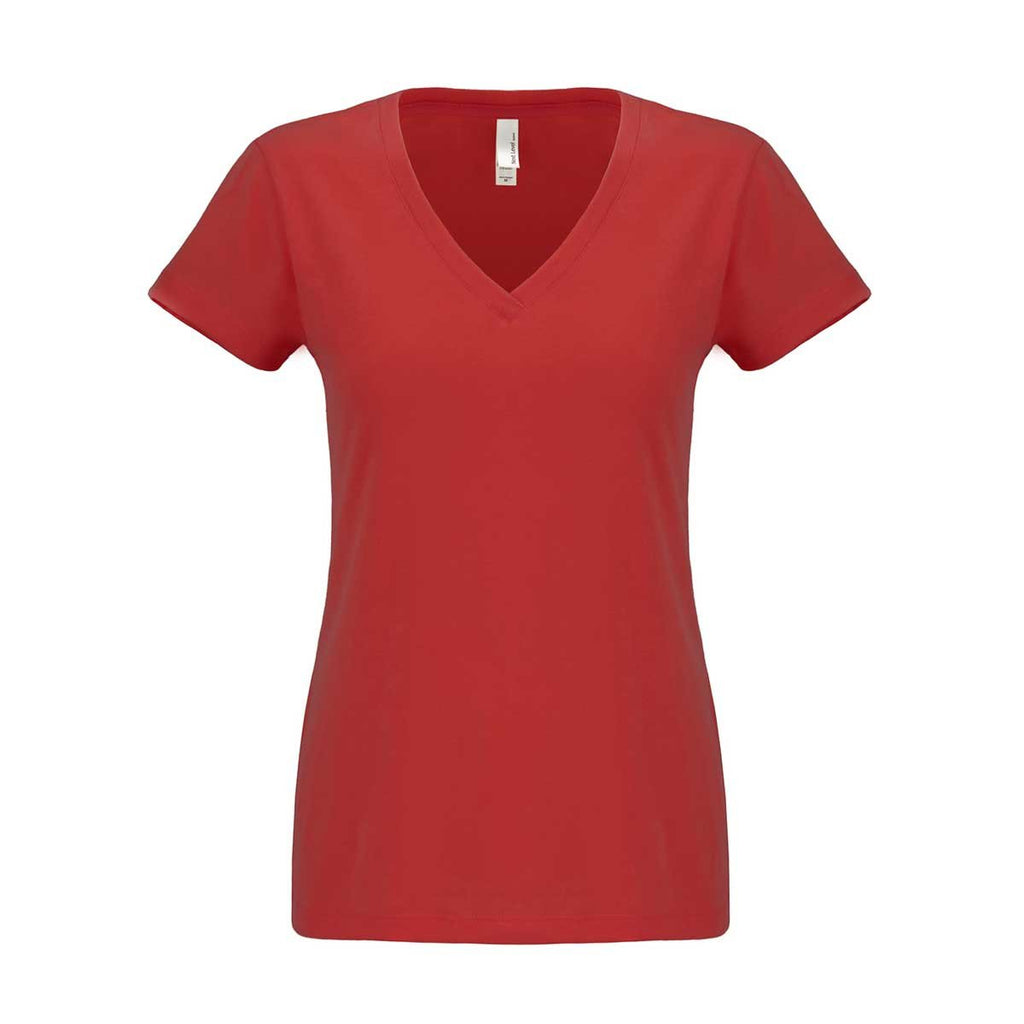 The average T-shirt is relegated to the bottom of your wardrobe's totem pole. We don't blame you. The average T-shirt, after all, is a drab, somewhat stylistically inappropriate item you can barely wear anywhere without feeling underdressed. Why do we tell you this? So you understand what the opposite of the Next Level Women's Red Sueded V-Neck Tee looks like. With this v-neck with you, you can handle a variety of situations with comfort and confidence. All that you need to complete the picture is your custom event or business logo on the front. We can help you out in that department.Setup includes free 2-color logo on 1 location. If you need more colors added to your logo, or another imprint location, please inquire with a Merchologist.