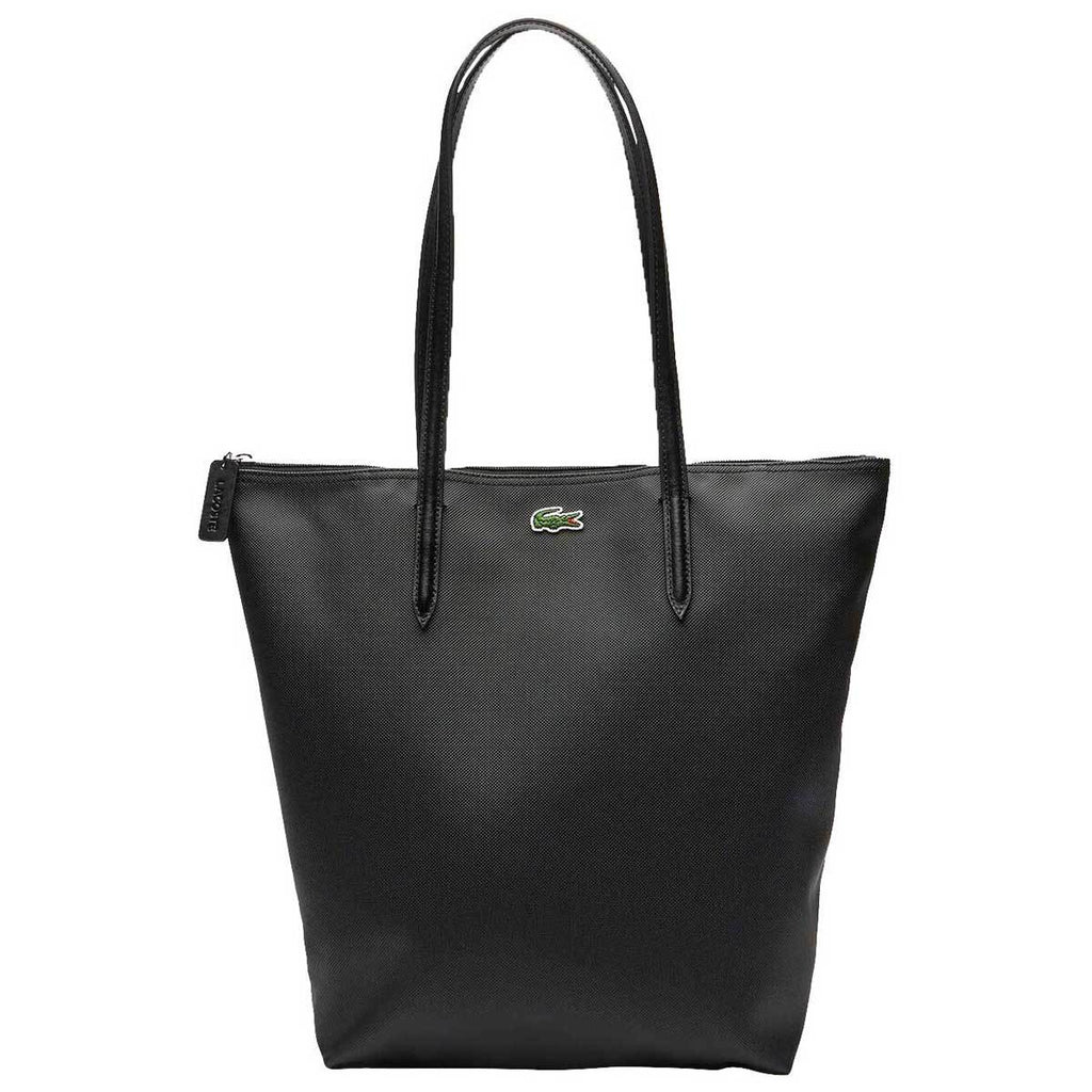 A great vertical tote is a must have and the Lacoste Women's Black L.12.12 Vertical Tote Bag is no exception. This tote offers two large handles and a zippered net pocket that make it both fabulous and practical. The solid, yet understated bag goes with everything from corporate wear to weekend get away casual. Made of PVC, this tote makes an employee gift that will be used, loved, and cherished over time. Dimensions of 26 x 35 x 16 cm means plenty of room for an overnight stay or daily necessities. The Lacoste green crocodile is located at the top center and a branded zipper slider keeps everything secure.