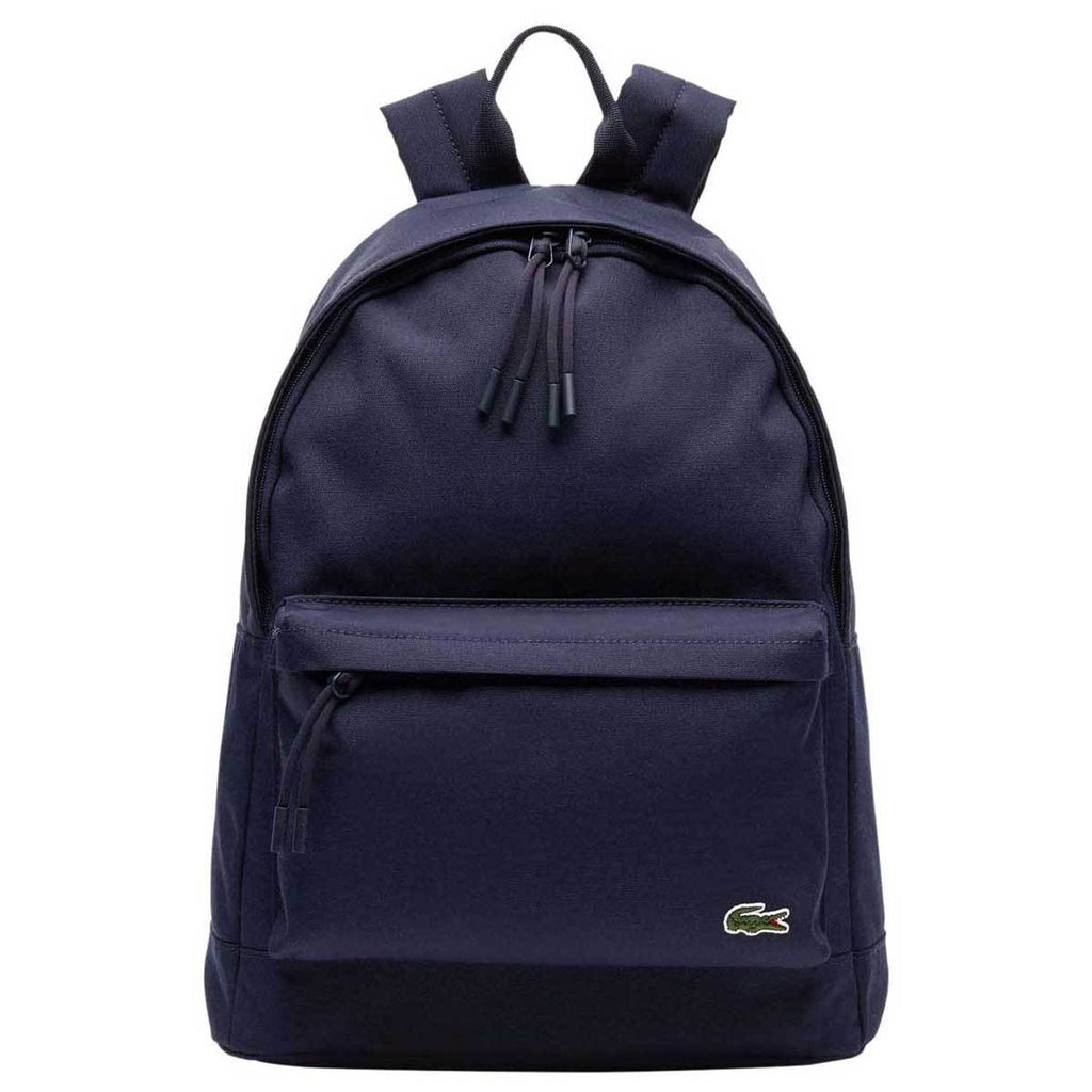Keep your belongings close at hand with a custom embroidered Lacoste Peacoat Canvas Backpack.. Designed for men, this crafted polyester canvas backpack is topped with an iconic embroidered green crocodile and ideal for everyday use. Adjustable straps mean it can comfortably fit most and a single zipped exterior pocket paired with two interior pockets and a computer pouch allow all your belongings to be safely stored. Add custom embroidery to offer these as employee gifts or prizes at a corporate event. Fill each with company logo designed products to entice new customers to try your organization or services at planned events.Highlights