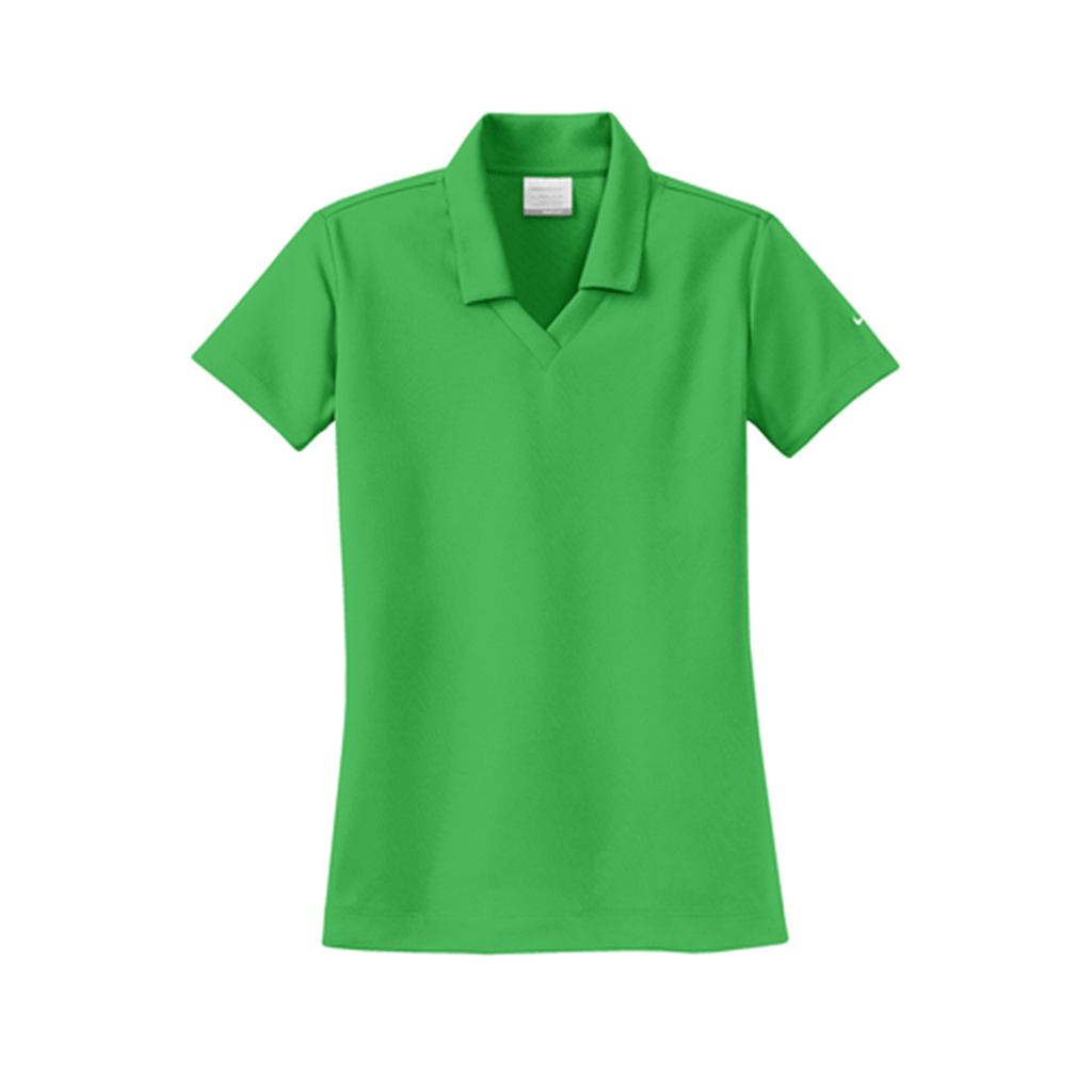 What is it that makes a great women's custom polo shirt? While we don't have all the answers, it seems like Nike certainly does. These personalized Lucky Green Micro Pique Polo shirts for women have it all. They are made using Nike's signature Dri-FIT fabric that's engineered to be breathable and sweat-wicking, so you can stay cool under the collar on the golf course or in the office all day. Plus, the iconic Nike Swoosh logo is located on the left sleeve, leaving some prime real estate for your custom embroidered company logo on the left or right chest. It's almost as if Nike designed these short sleeve polos just for your business. Not only does it make a great golf shirt to wear on the course, but it is also a fantastic everyday shirt as well. The Nike Women's Lucky Green Dri-FIT S/S Micro Pique Polo looks great on its own or layered with other items. Engineered with moisture management technology, this top will keep the wearer cool, calm and collected when under the sun or in high stress situations.