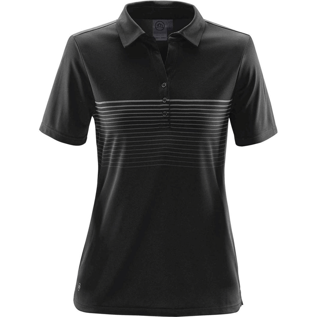 Bring your passion for polos to the table when you order the custom logoed Stormtech Women's Black/Titanium Wavelength Polo for the new members of your high achieving company team. The snag free fabric prevents the types of rips and tears that diminishes the quality of other styles of polos. Proprietary moisture wicking technology not only makes the polo perfect for wear during sporting competitions, it is also a great shirt to wear for when you perform outdoor home improvement projects. Attach a custom logo on the polo to stand out at the next recruiting event. Low profile sublimated print allows the bold colors of the polo to shine.Corresponding Men's Style: Stormtech Men's Black/Titanium Wavelength Polo