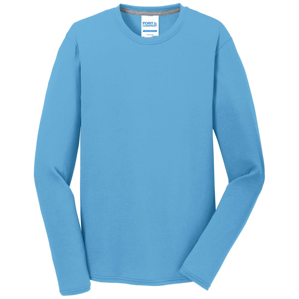 Port & Company Men's Aquatic Blue Long Sleeve Performance Blend Tee