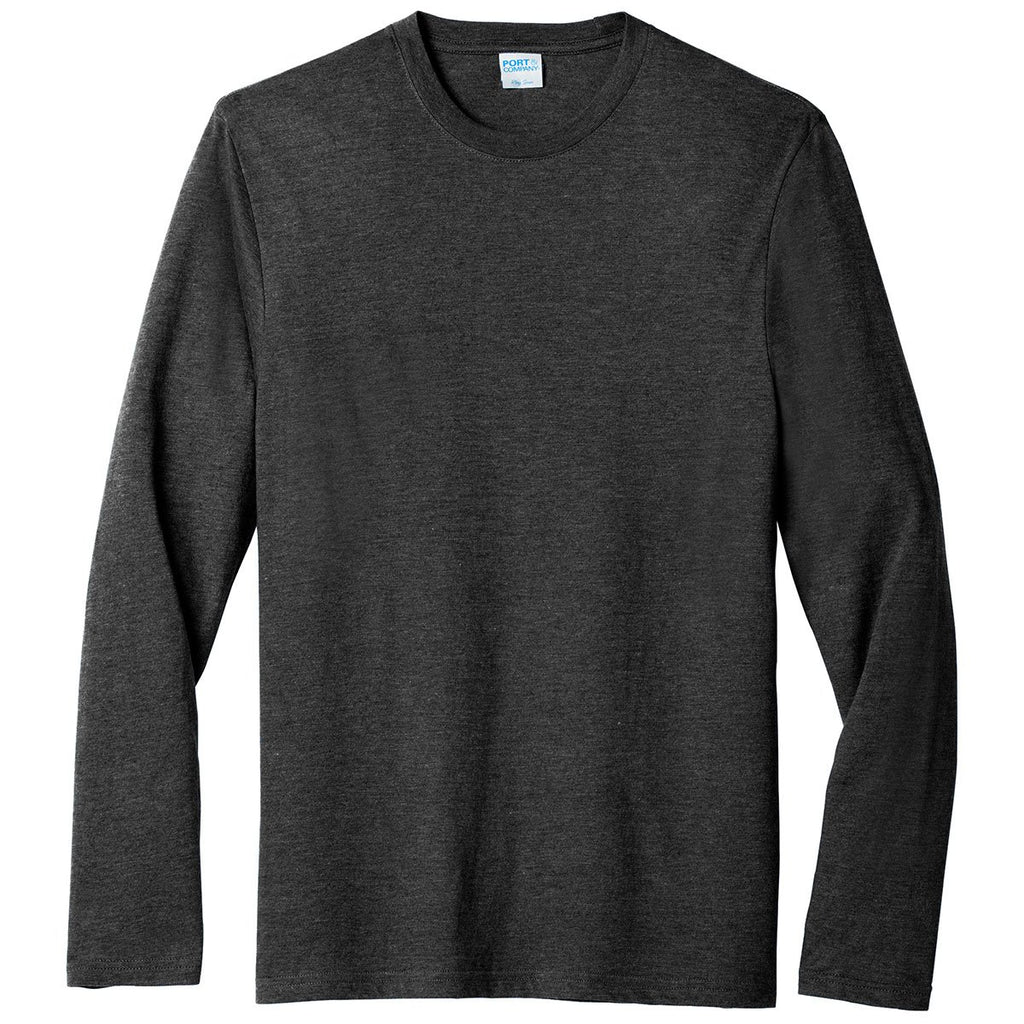 Port & Company Men's Black Heather Long Sleeve Fan Favorite Blend Tee
